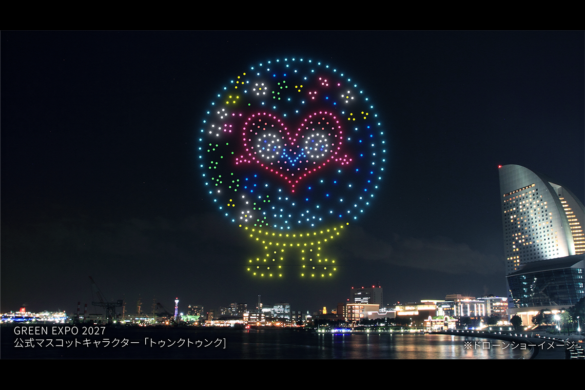 本イベントでは、公式マスコットキャラクター「トゥンクトゥンク」が初めて横浜の夜空に登場。さらに、2025年大阪・関西万博の「ミャクミャク」との夢の共演が実現します。空いっぱいに広がる花々や緑のモチーフを、ドローンの光で描き出し、自然と人が共に生きる幸せな明日への風景を幻想的に表現します。