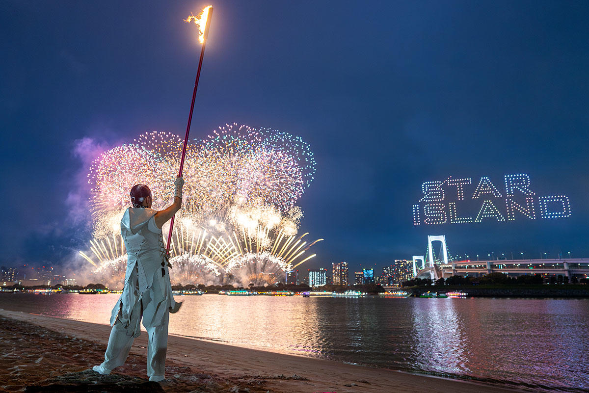 ショーは、大阪・関西万博のロゴタイプからスタート。夜空に「184days」と描かれると、2025年に開催された万博の賑わいを思い起こさせる演出となりました。
