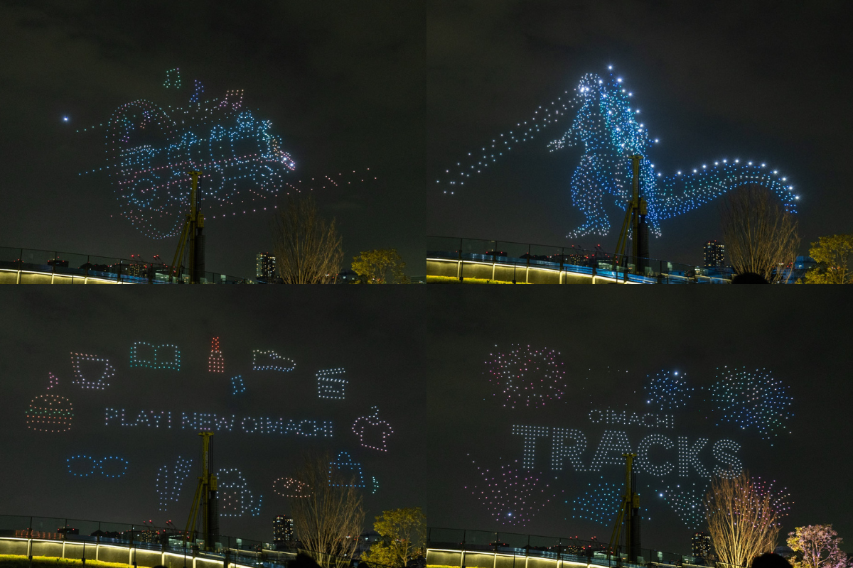 その中でも特に注目を集めたのが、開業記念として実施されたドローンショー「TRACKS OPENING DRONE SHOW」です。投入されたドローンの数は1,500機。ショーは同日19時と21時の2回開催され、多くの来場者が夜空を見上げていました。本記事では、その演出内容をご紹介します。