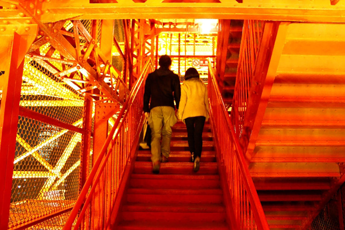 東京タワーでは、2026年2月11日(水・祝)からバレンタイン企画が始まり、2月14日(土)には外階段の夜間特別開放が実施されます。約600段のオープンエア外階段は、通常は日中のみの開放ですが、この日は21時まで利用可能。フットタウン屋上からメインデッキ(150m)まで、夜景を眺めながら昇る体験は格別で、ライトアップされた鉄骨の中を進む臨場感は東京タワーならではです。自然と2人の仲は深まるはずです。達成後には昇り階段認定証がもらえるのも嬉しいポイント。