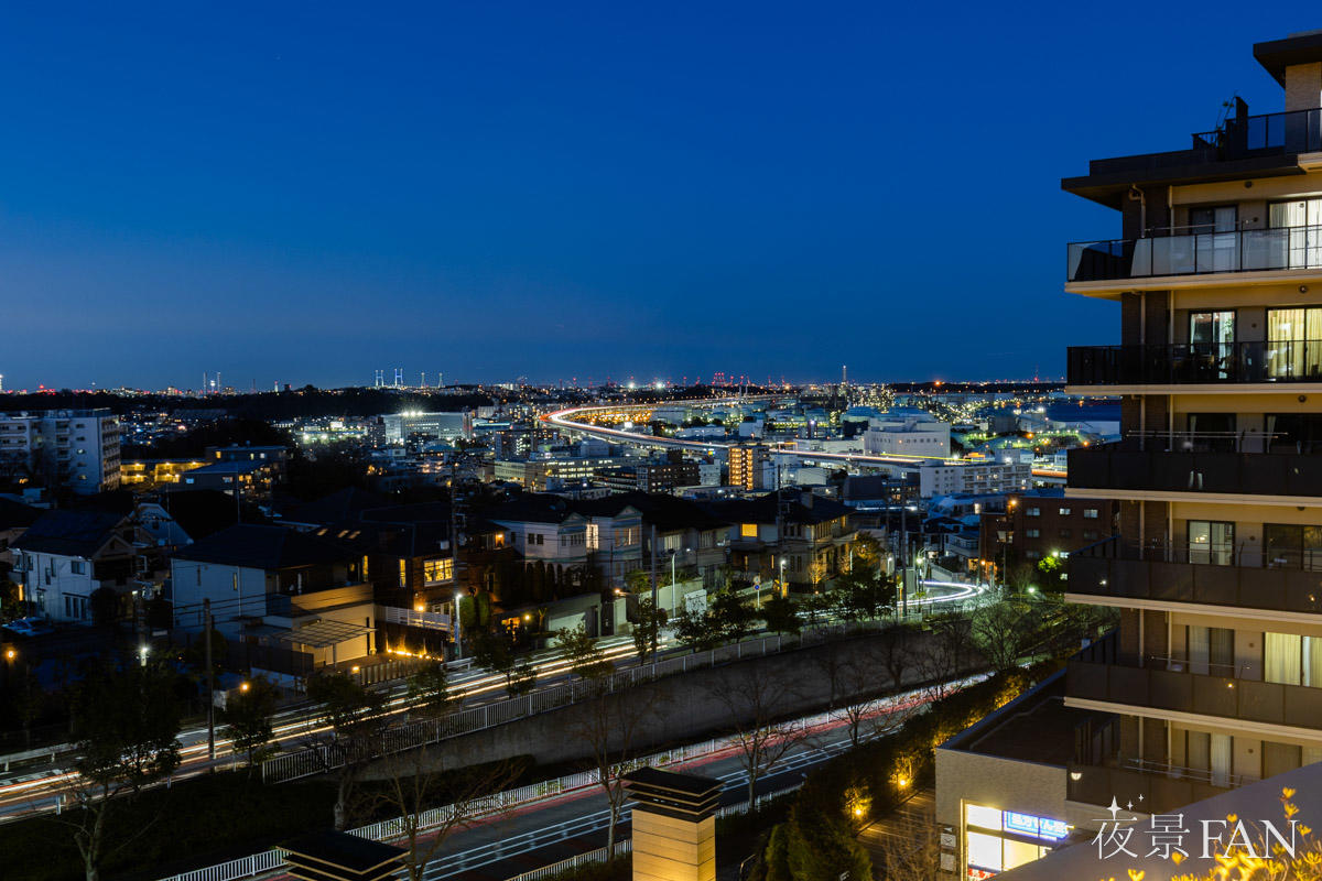眺望は主に北方向。眼下には磯子エリアの住宅地夜景が広がり、生活の灯りが連なっていく様子が印象的です。