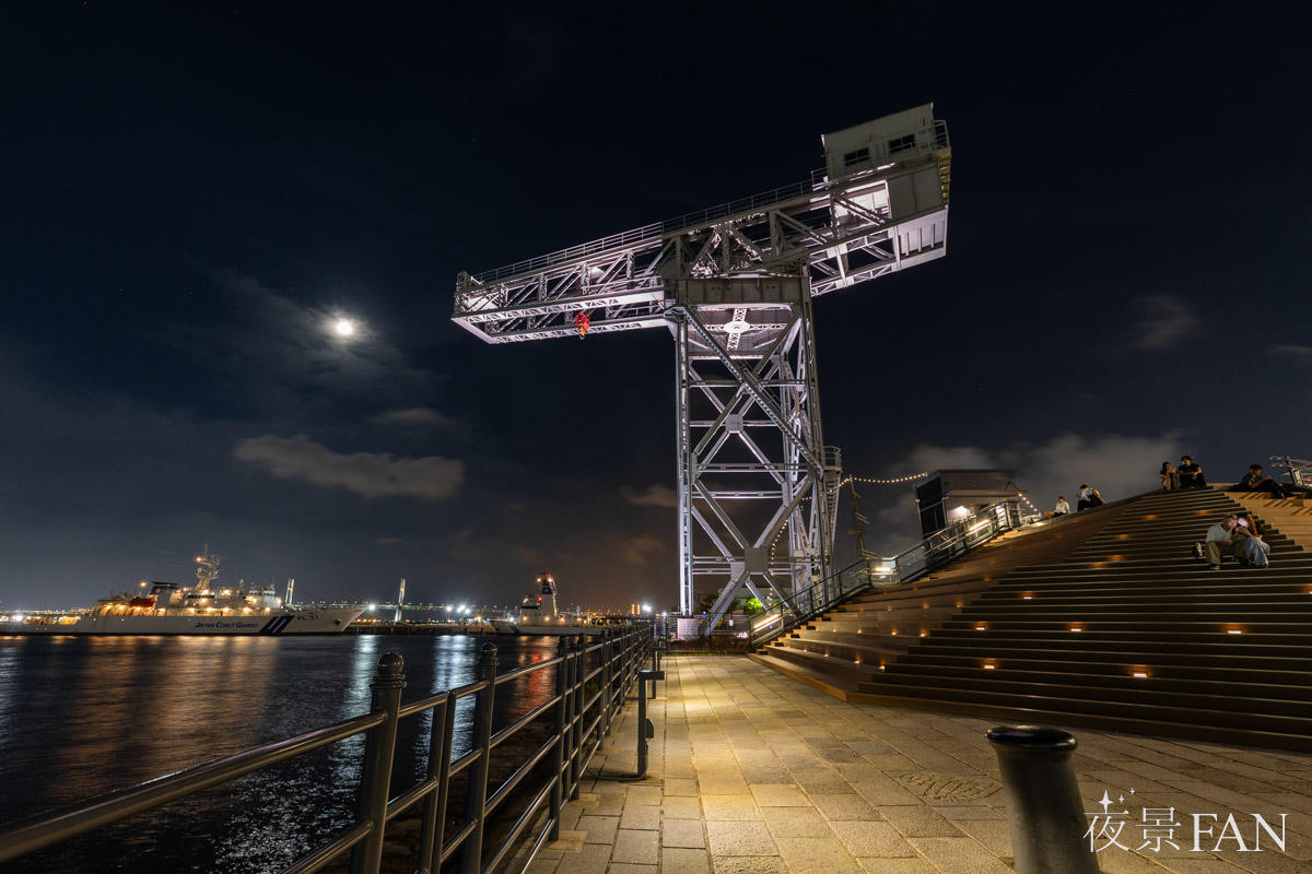 横浜港に突き出す位置にあるハンマーヘッドパークは、港町・横浜らしさを色濃く感じられる夜景スポットです。視界を遮る建物が少なく、海・港湾施設・都市夜景が立体的に重なり合う光景を楽しめます。