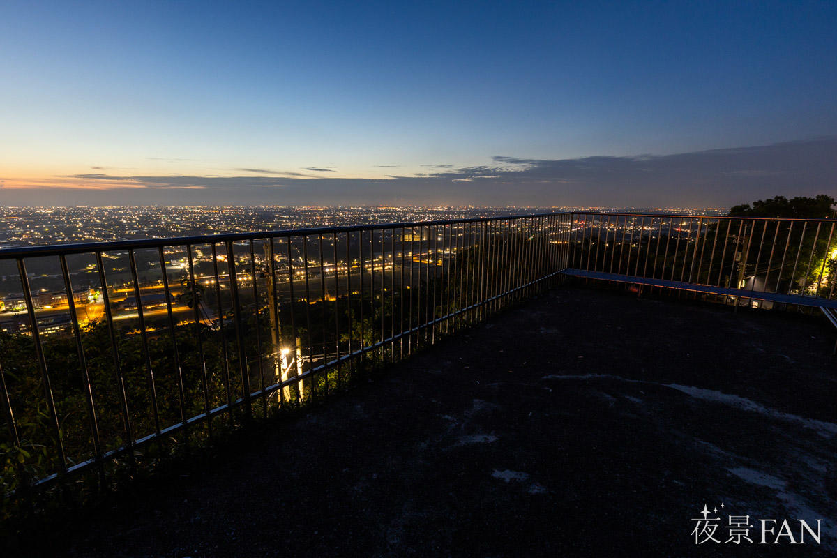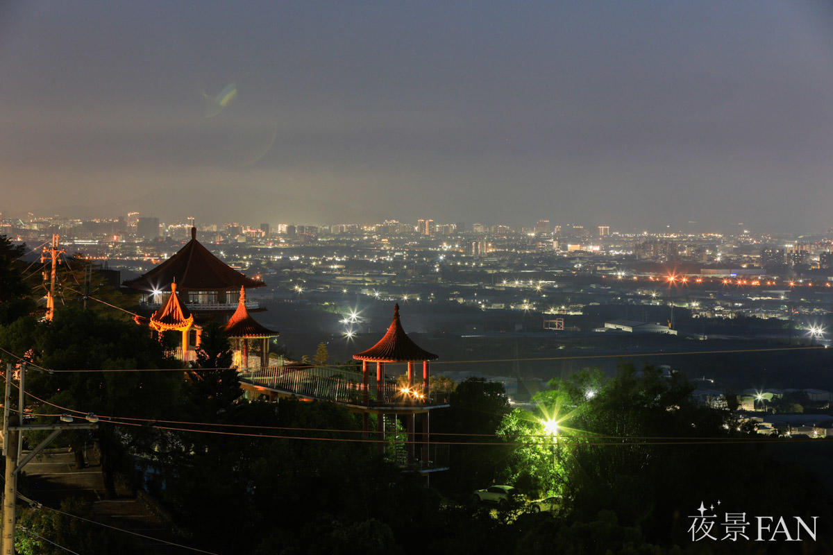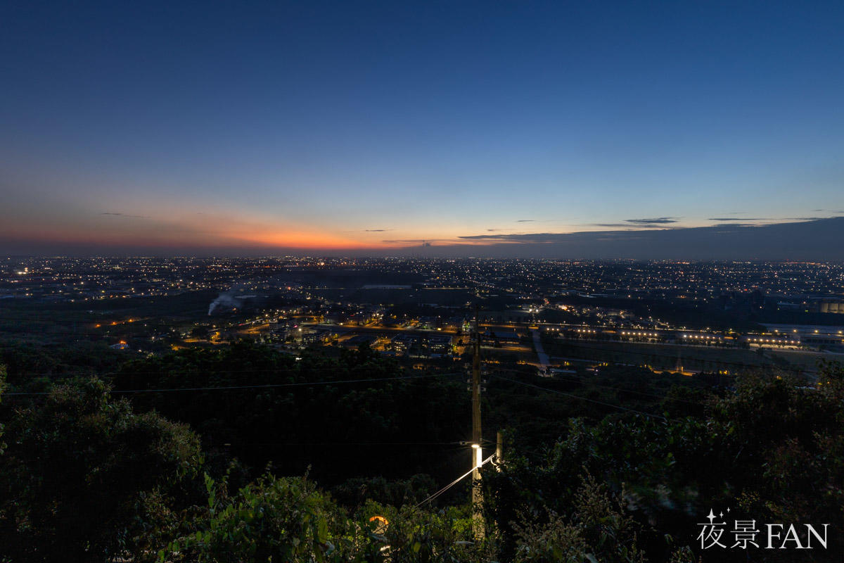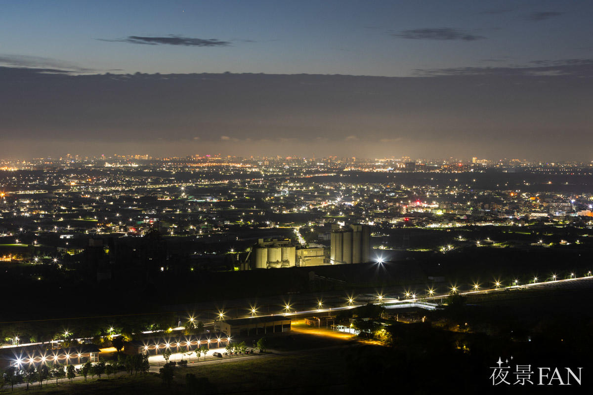 展望台からは、阿蓮区を中心とした平野部の夜景が広がります。住宅地と田園地帯の灯りが点在する、奥行きと広がりを感じさせる夜景が特徴です。無数の生活の灯りが、まるで光の海のように静かに広がり、視線を北へ向けると台南方面の夜景も望めます。