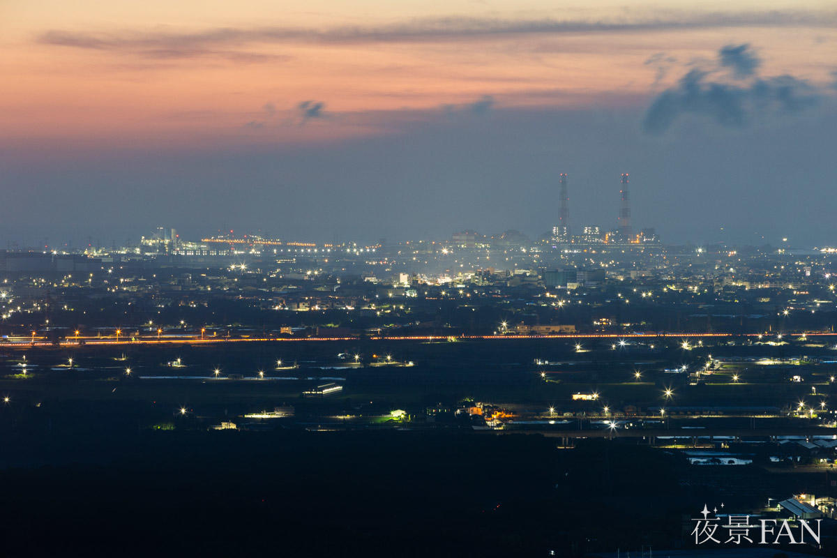 展望台からは、阿蓮区を中心とした平野部の夜景が広がります。住宅地と田園地帯の灯りが点在する、奥行きと広がりを感じさせる夜景が特徴です。