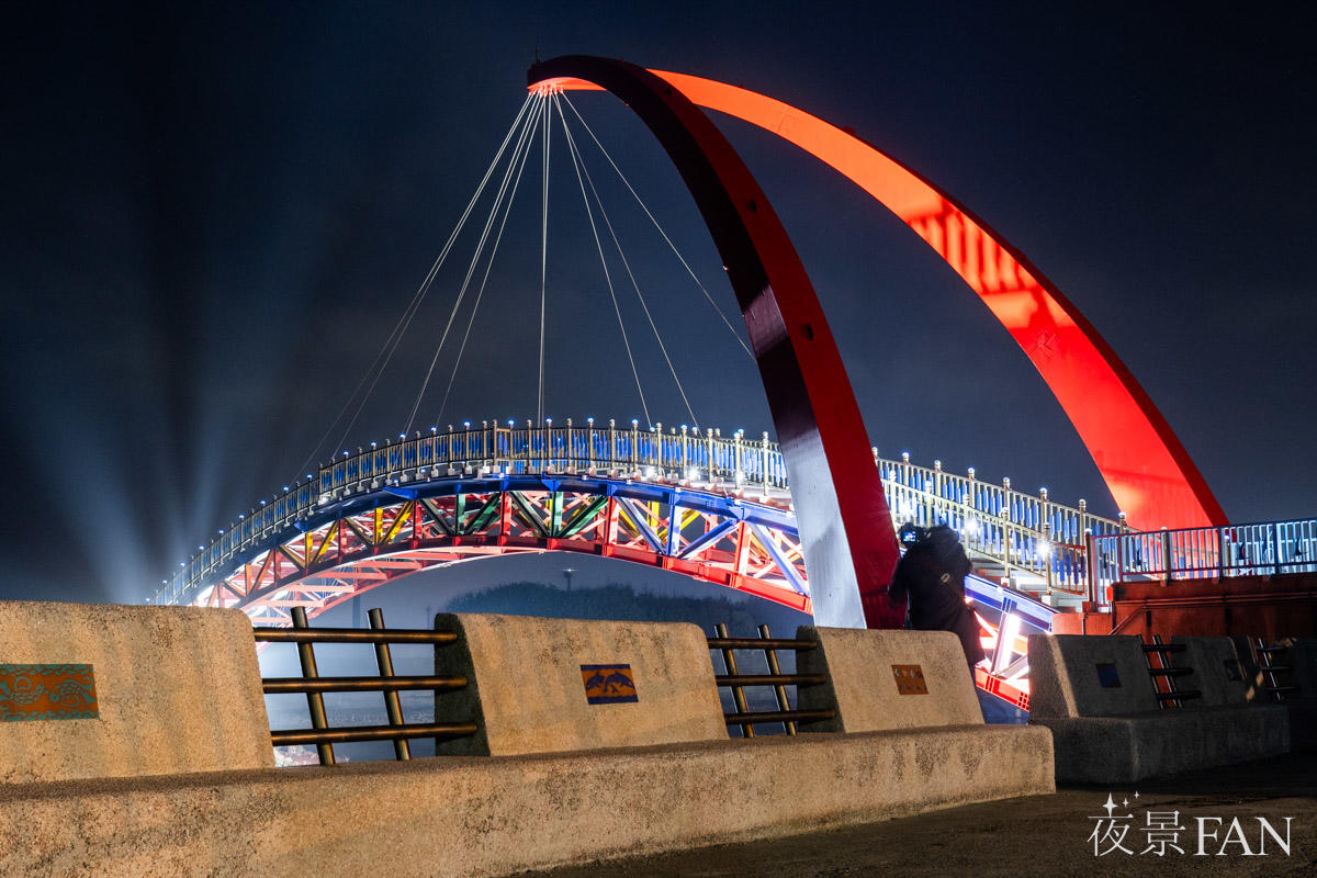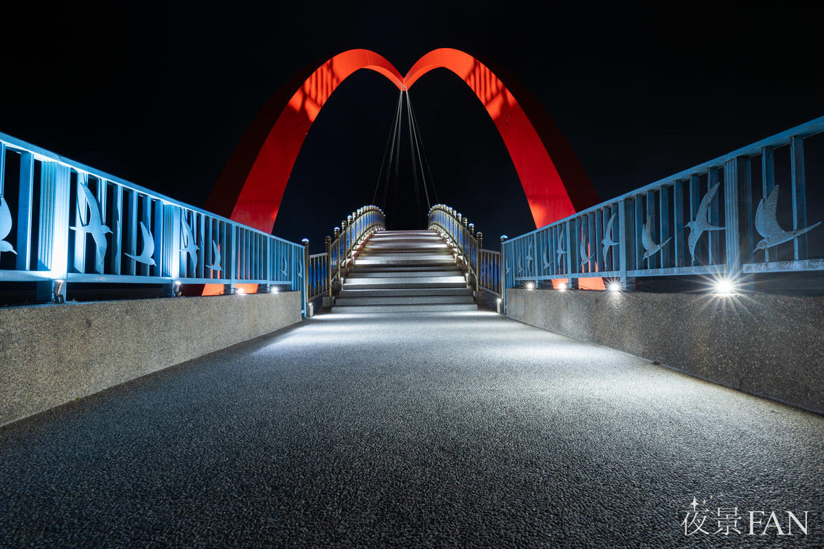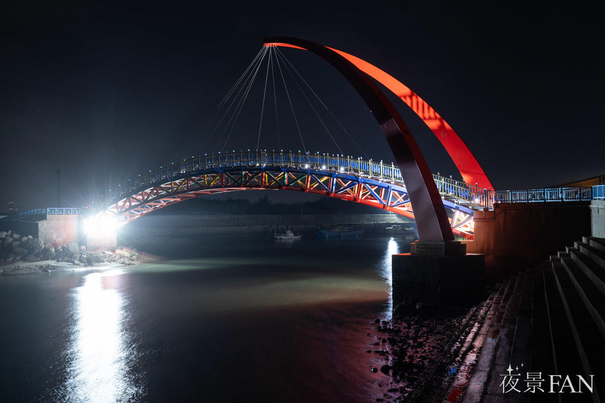 苗栗県苑裡鎮の海浜部に位置する苑港漁港は、昼間は活気ある漁業の拠点として知られていますが、夜になるとその表情は大きく変わります。港のシンボルである赤いアーチ橋がライトアップされ、漁港一帯を静かに照らし出す光景は、落ち着いた港町らしい夜景を演出します。 港内には漁船が係留されており、船体に映り込む照明や、水面に揺れる光の反射が印象的。派手さはありませんが、漁港ならではの生活感と静けさが同居する夜景を楽しめます。アーチ橋の曲線美と直線的に並ぶ漁船の対比も、この場所ならではの見どころです。 周辺には歩道や東屋が整備されており、夜でも比較的落ち着いて散策できる環境が整っています。また、港周辺には食事ができる施設もあり、夕食後に立ち寄る夜景スポットとしても使いやすい点は魅力のひとつ。